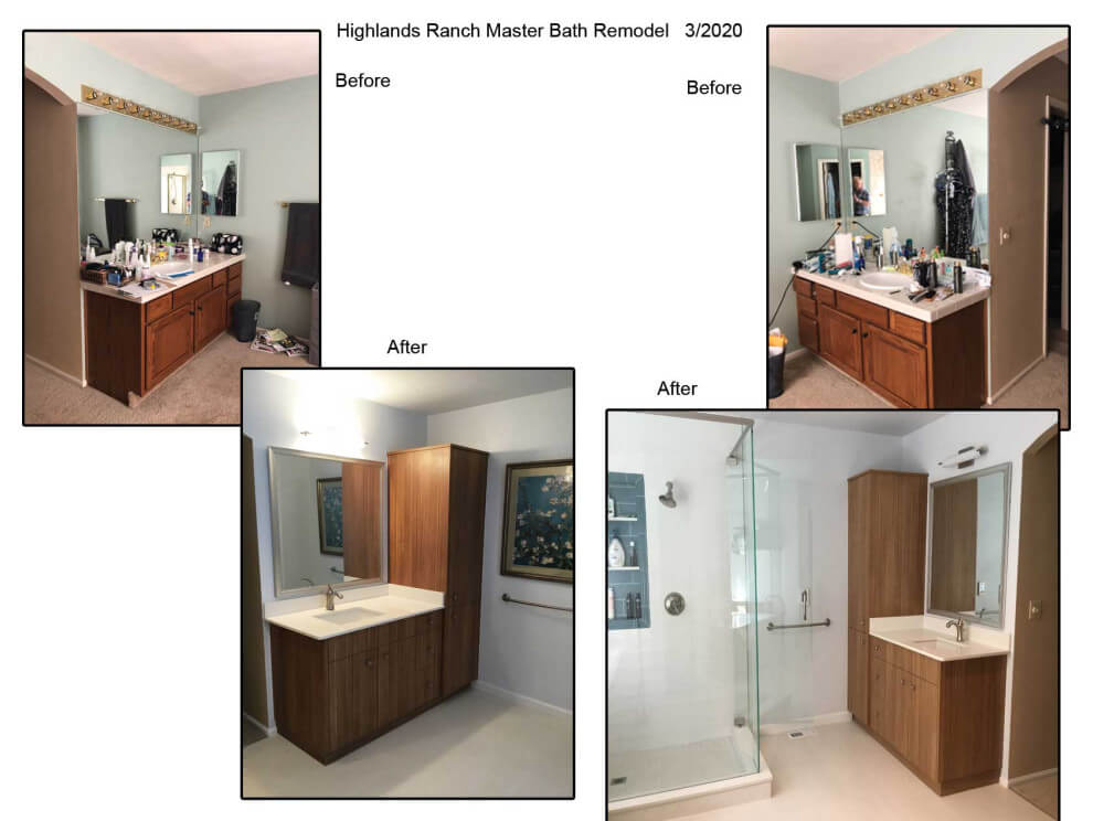 This 1980-ish master bathroom was in dire need of remodeling. The customer was newly pregnant and they needed to get this bathroom remodel done before the new baby arrived. She chose the glass accent tiles and off we went with the design. The budget was unbelievably tight, we made it work with some give and take from every provider. It turned out beautifully.