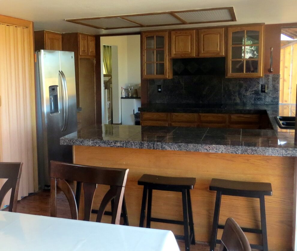 Dated kitchen gets a major remodel by getting rid of the dropped ceiling.